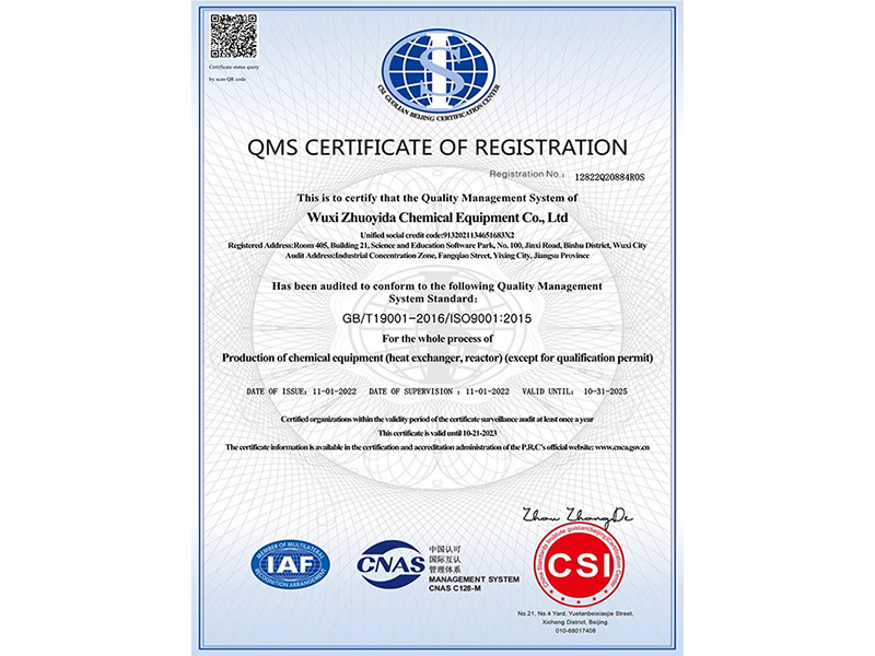 無錫卓億達化工裝備有限公司 質(zhì)量合格、誠信經(jīng)營、互惠互利、真誠相待